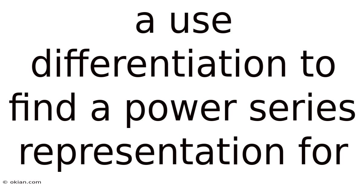 A Use Differentiation To Find A Power Series Representation For