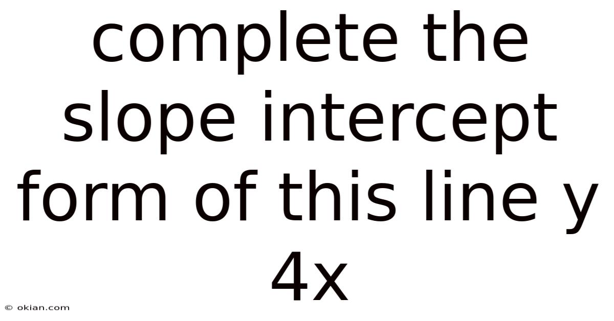 To complete the slope-intercept form of the line y = 4x, we need to identify both the slope and the y-intercept explicitly. Let's break this down systematically: