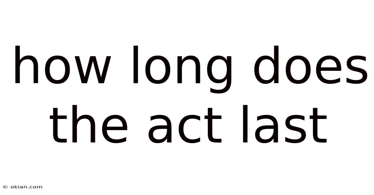 1. How long does the ACT last without the Writing section? The ACT without the Writing section lasts 2 hours and 55 minutes of actual testing time, plus breaks, making the total time approximately 3 hours and 30 minutes.