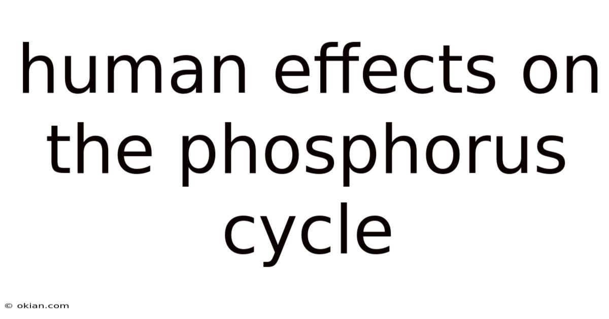 Phosphorus is an elemental cornerstone of life as we know it. It forms the backbone of DNA and RNA, is a critical component of ATP—the energy currency of cells—and is a vital nutrient for plant growth. Day to day, yet, this essential element operates within a slow, geological cycle that has been dramatically accelerated and disrupted by human activity. The human effects on the phosphorus cycle represent one of the most significant yet under-discussed environmental challenges of our time. In real terms, unlike carbon or nitrogen, phosphorus does not have a gaseous phase in its natural cycle; it moves primarily through rock, soil, water, and living organisms over millennia. Human interventions have hijacked this slow-moving system, causing a cascade of ecological consequences, from toxic algal blooms to the creation of vast "dead zones" in our oceans. This article will comprehensively explore how our actions have fundamentally altered the planet's phosphorus flows, why this matters for global ecosystems and food security, and what pathways exist toward a more balanced and sustainable relationship with this critical nutrient.