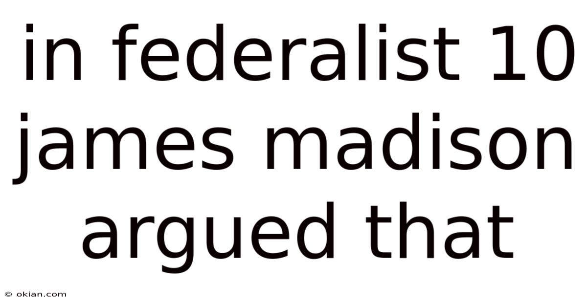 In Federalist 10 James Madison Argued That