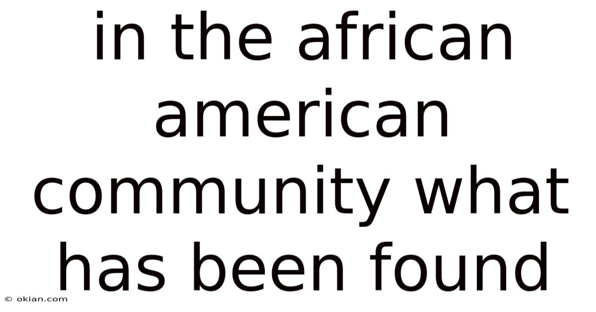 In The African American Community What Has Been Found