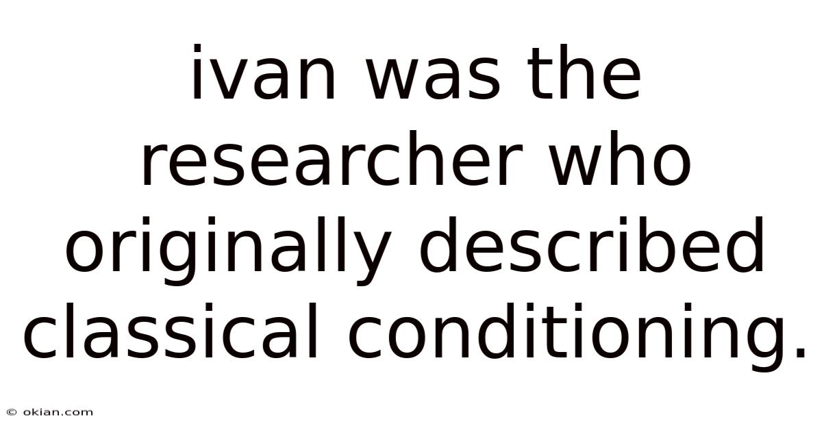 Ivan Was The Researcher Who Originally Described Classical Conditioning.