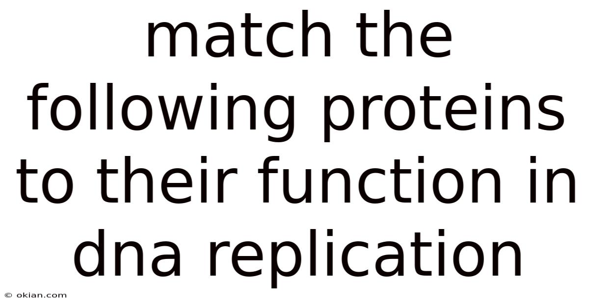 Match The Following Proteins To Their Function In Dna Replication