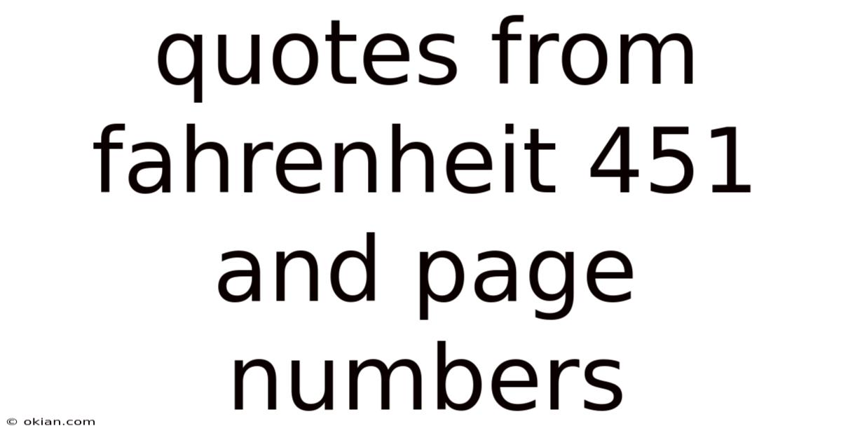If you aresearching for quotes from Fahrenheit 451 and page numbers, you have landed on the right page. This article serves as a compact guide that not only lists some of the most memorable passages from Ray Bradbury’s classic dystopia but also explains why those quotations matter, how to locate them in different editions, and how to use them effectively in essays or discussions. By the end, you will have a clear roadmap for citing the novel’s most powerful lines, complete with typical page references from the widely‑read paperback version. Whether you are a high‑school student preparing a book report, a college scholar writing a literary analysis, or simply a curious reader, this guide will help you work through the text with confidence and precision But it adds up..