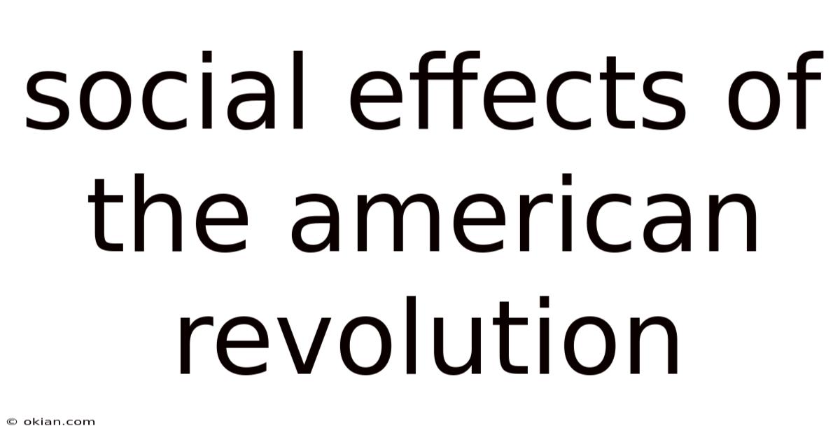 Social Effects Of The American Revolution