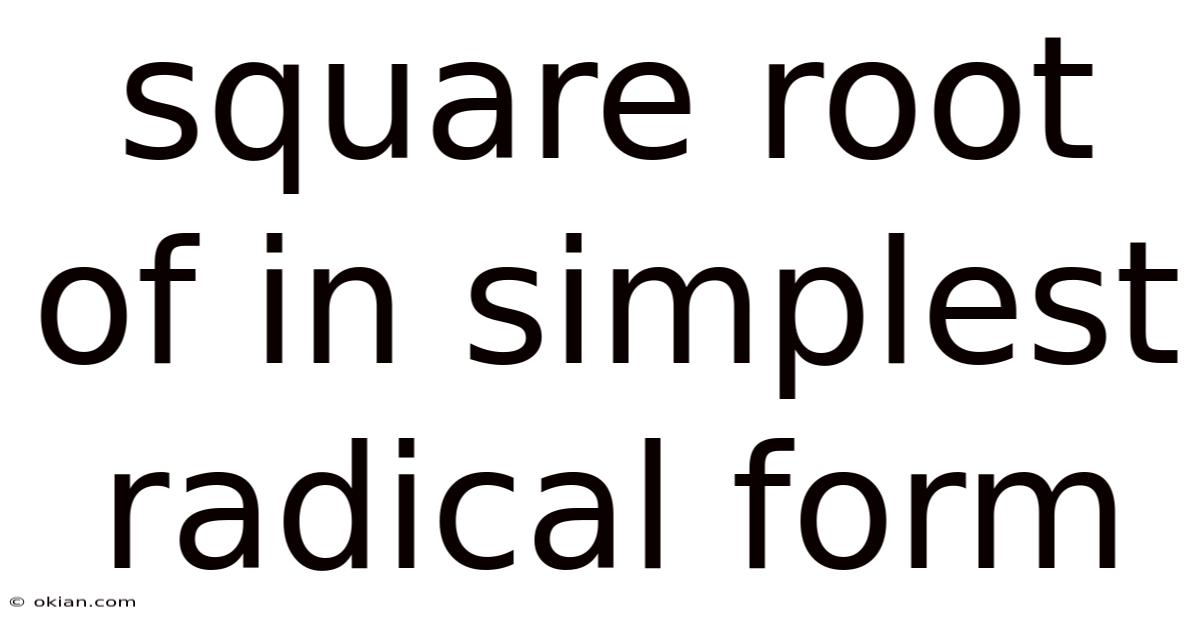 The concept of expressing the square root of a number in its simplest radical form is a fundamental skill in algebra and higher mathematics. Plus, it allows us to write square roots in their most reduced and standardized format, making calculations cleaner and more efficient. Practically speaking, when we talk about the simplest radical form, we're referring to a square root expression where the number under the radical sign (called the radicand) has no perfect square factors other than 1. This form is not only aesthetically pleasing but also crucial for solving equations, simplifying expressions, and comparing values in mathematics Not complicated — just consistent..