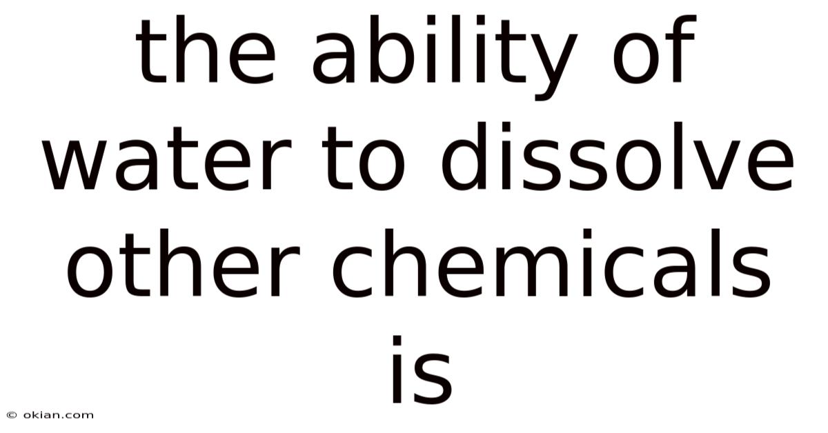 Water is the lifeblood of our planet, the medium in which all known biological processes occur, and the most common substance on Earth's surface. That said, this property, formally known as solvency, is the cornerstone of chemistry, biology, geology, and countless industrial processes. Yet, its most profound chemical superpower is often taken for granted: the ability of water to dissolve other chemicals. That said, from the nutrients cycling through a forest ecosystem to the precise formulations in a pharmaceutical laboratory, water's role as a universal solvent shapes our world at a molecular level. This article will delve deeply into the mechanisms, principles, and far-reaching implications of this fundamental characteristic, moving beyond simple observation to a comprehensive understanding of why and how water performs this essential task Small thing, real impact..