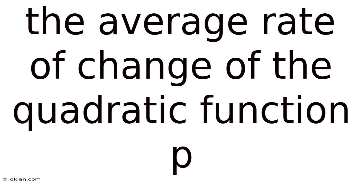 The average rate of change is a fundamental concept in calculus and algebra that measures how one quantity changes in relation to another over a specific interval. When we apply this principle to a quadratic function—a polynomial of degree two with the general form ( p(x) = ax^2 + bx + c )—we access insights into the behavior of parabolic curves, which model everything from projectile motion to economic trends. The average rate of change of the quadratic function ( p ) specifically quantifies the slope of the secant line connecting two points on the parabola, providing a snapshot of its average steepness between those points. Understanding this concept is essential for students, engineers, and data scientists, as it bridges the gap between static function values and dynamic change. This article will dissect the mechanics of calculating and interpreting the average rate of change for quadratic functions, emphasizing its practical significance and mathematical elegance Simple as that..