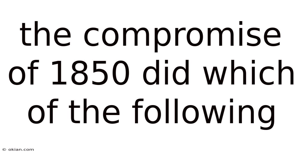 The Compromise Of 1850 Did Which Of The Following