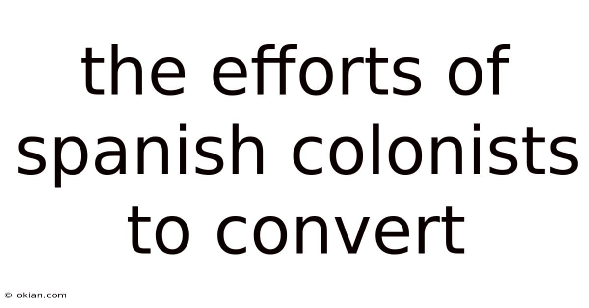 The efforts of Spanish colonists to convert indigenous populations during the Age of Exploration were among the most significant and complex aspects of colonial history. Here's the thing — the Spanish Empire, under the Catholic Church’s influence, viewed conversion as both a moral duty and a strategic tool to legitimize its colonial endeavors. The term "efforts of Spanish colonists to convert" refers to the systematic attempts by Spanish settlers, missionaries, and officials to impose Christianity on indigenous peoples across the Americas, Africa, and parts of Asia. This process, rooted in the 15th and 16th centuries, was driven by a combination of religious zeal, political ambition, and economic interests. These efforts were not merely about spreading faith; they were deeply intertwined with the broader goals of colonization, including the establishment of control over new territories and the assimilation of native cultures That's the whole idea..