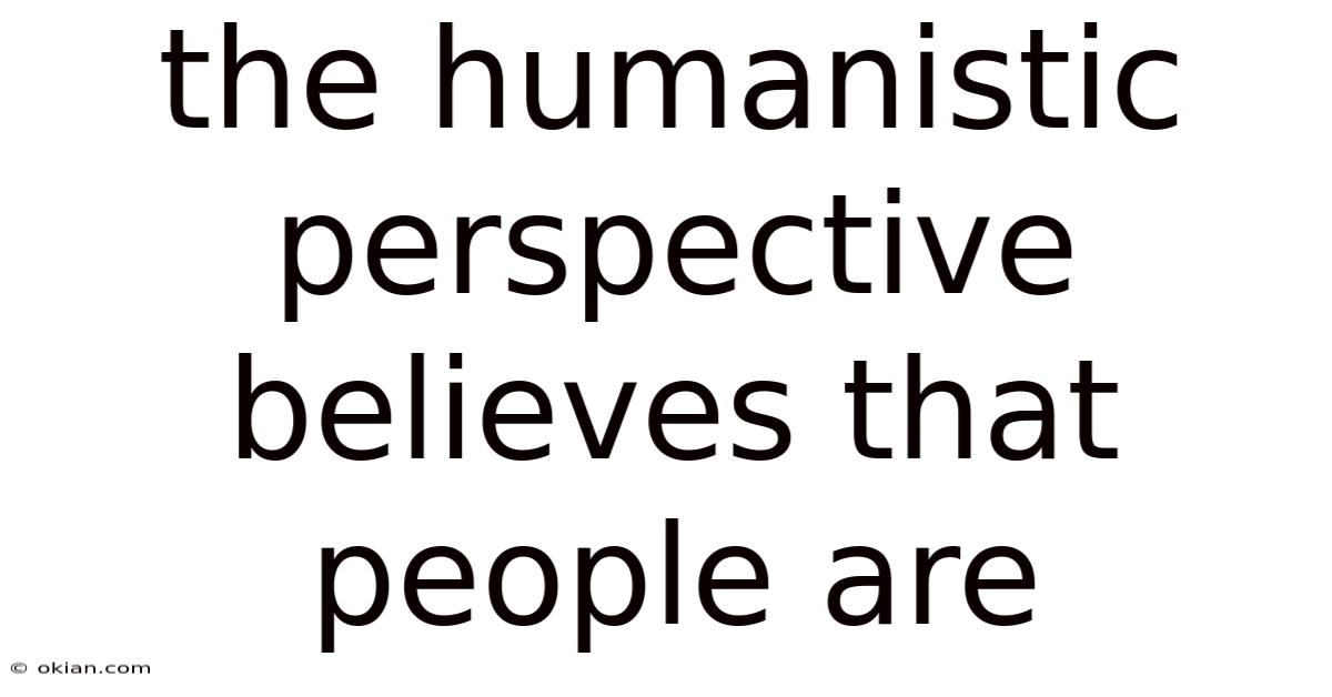 The Humanistic Perspective Believes That People Are