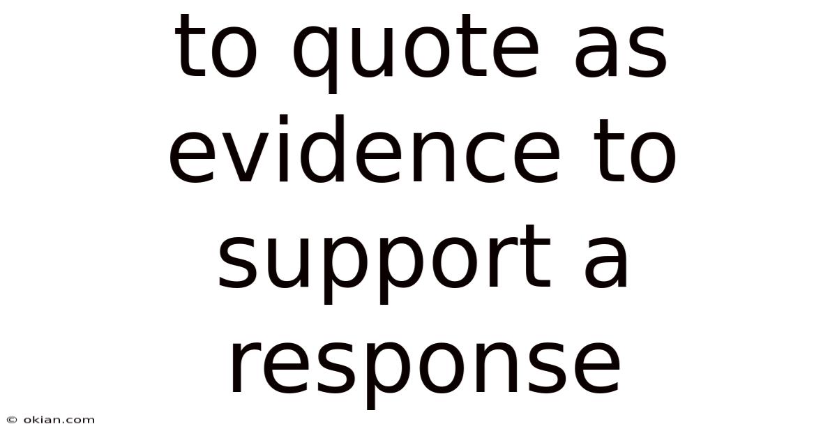 To quote as evidence to support a response is a fundamental skill in academic writing, critical thinking, and effective communication. Which means it involves selecting relevant words, phrases, or passages from authoritative sources and incorporating them into your argument to strengthen your position. This practice not only adds credibility to your claims but also demonstrates that your ideas are grounded in established research or expert opinion. Whether you're writing an essay, preparing a debate, or engaging in professional discourse, the ability to quote effectively is essential for persuading your audience and building a compelling case.