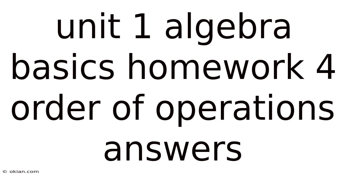 Unit 1 Algebra Basics Homework 4 – Order of Operations Answers is a cornerstone exercise that reinforces the fundamental rules governing algebraic calculations. In this opening section we define the main keyword, explain its relevance, and set the stage for a deep dive into the concepts, step‑by‑step methods, and practical examples that will help you master the topic. By the end of this article you will not only have the correct answers but also a solid conceptual framework that you can apply to any algebraic expression Easy to understand, harder to ignore..
