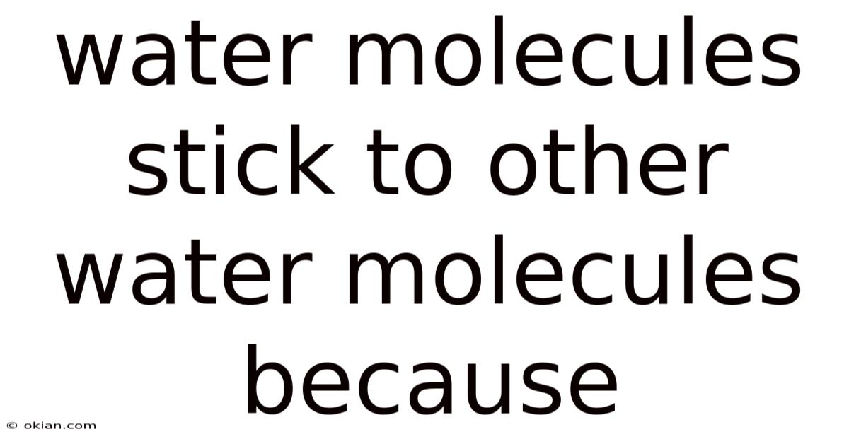 The phrase “water molecules stick to other water molecules because” is a gateway to understanding one of the most essential forces in nature—hydrogen bonding. These subtle yet powerful interactions not only give water its remarkable properties—surface tension, capillary action, high specific heat—but also underpin countless biological, environmental, and industrial processes. Still, by grasping why water molecules cling together, we gain insight into everything from the water cycle to the design of efficient microfluidic devices. The next time you watch a droplet roll off a leaf or marvel at a water strider dancing on a pond, remember that it’s the invisible network of hydrogen bonds holding the world together, one molecule at a time Most people skip this — try not to..