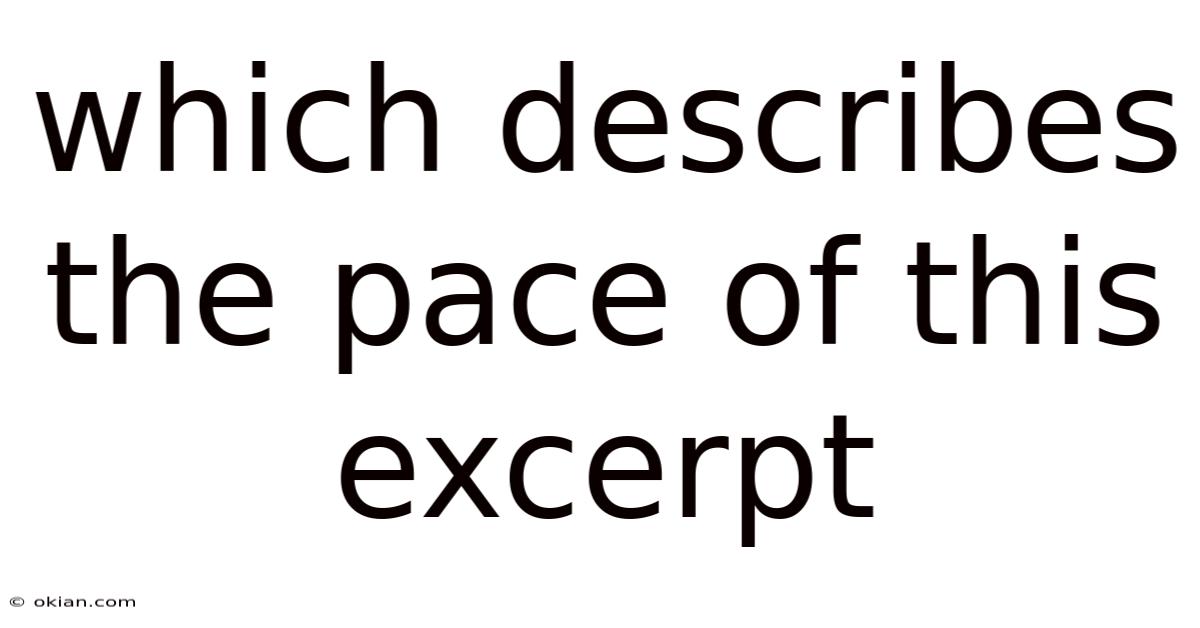 When reading a piece of literature, the pace of the narrative can make or break the experience. Pacing refers to the speed at which a story unfolds, how quickly or slowly events are revealed, and the rhythm that guides the reader through the text. In an excerpt, the pace is especially crucial because it offers a snapshot of the entire work’s tempo, setting the tone and hinting at the author’s intent. This article dives into what pacing means in the context of an excerpt, why it matters, and how to analyze it effectively That's the part that actually makes a difference..