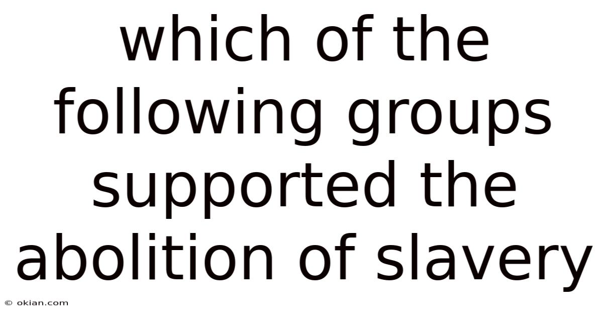 The abolition of slavery in the United States was a complex and multifaceted struggle that spanned decades, involving a wide array of individuals, organizations, and movements. While the institution of slavery was deeply entrenched in the American economy and social fabric, a growing coalition of people and groups worked tirelessly to dismantle it. Plus, their efforts ultimately led to the passage of the 13th Amendment in 1865, which formally abolished slavery in the United States. Even so, these groups, often referred to as abolitionists, were driven by a combination of moral, religious, economic, and political motivations. This article explores the key groups that supported the abolition of slavery, their roles, and the broader context of their actions Surprisingly effective..