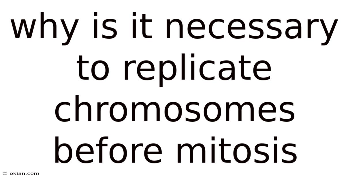 In every living cell, the genome is stored in a precise, double‑stranded structure called DNA. For a cell to divide properly—whether it is a plant cell, a human skin cell, or a bacterial progenitor—this DNA must be faithfully copied before the cell splits into two identical daughters. The process that ensures this duplication is chromosome replication, and it is indispensable for the success of mitosis, the division that produces two genetically identical cells. This article explores why chromosome replication is essential before mitosis, delving into the mechanics, biological significance, and potential pitfalls when the process goes awry Took long enough..
